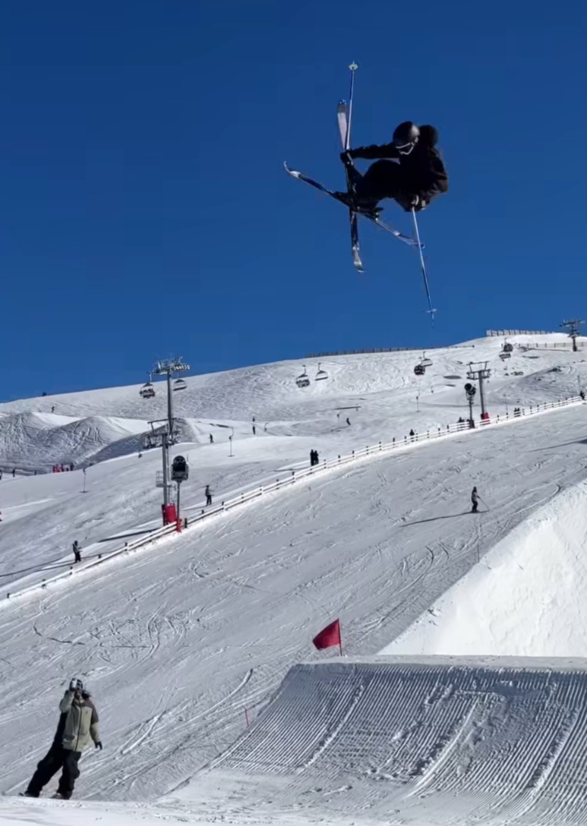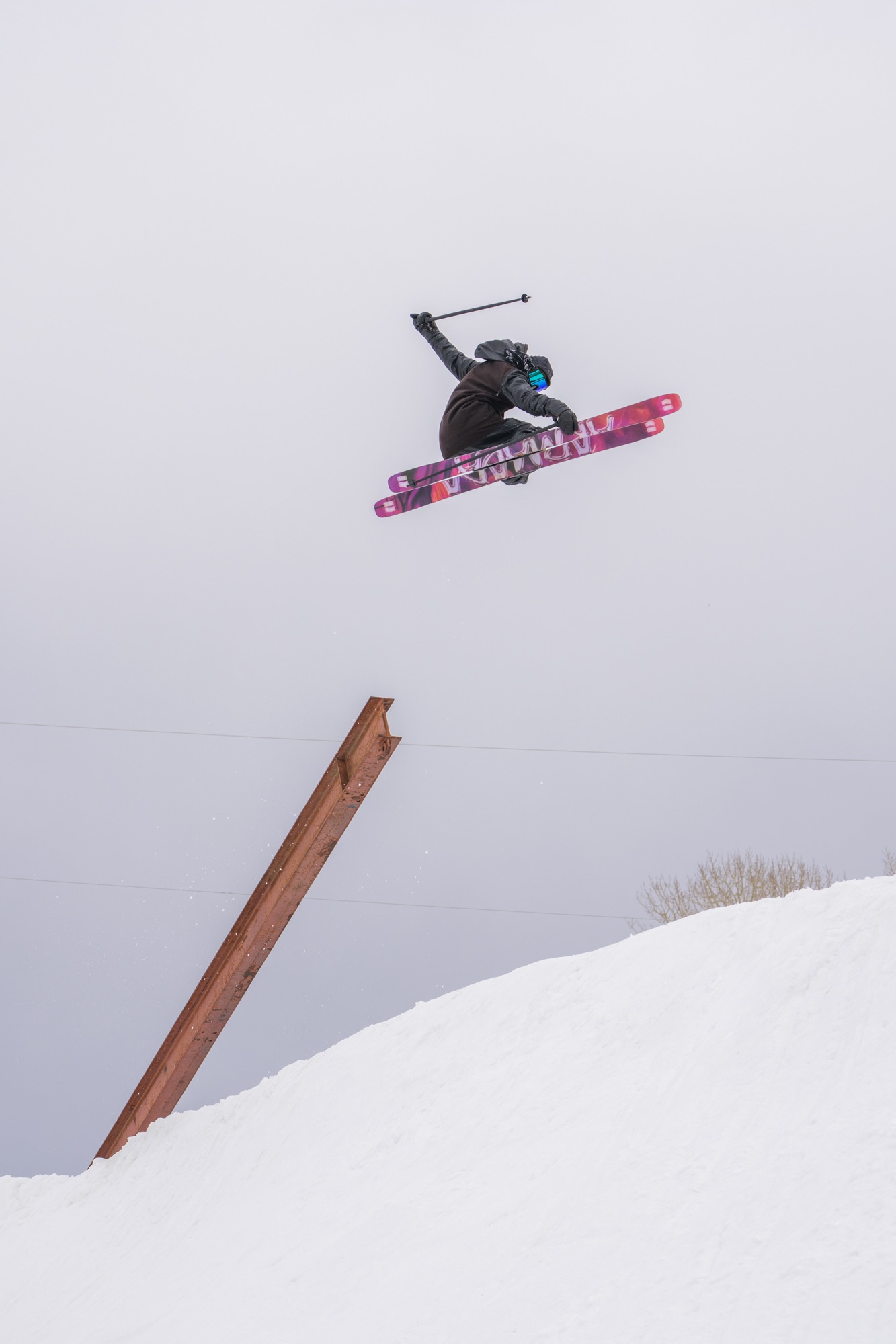 スキーの特徴は、センター88mmという細身で、ジブで身軽にこなせる点と、ジャンプではテイクオフのしやすさやグラブの取りやすさがとても良いと感じます。この板は硬くも柔くもなく丁度良い硬さなのでパークなどでのライディングではもってこいなスキーであると思います。