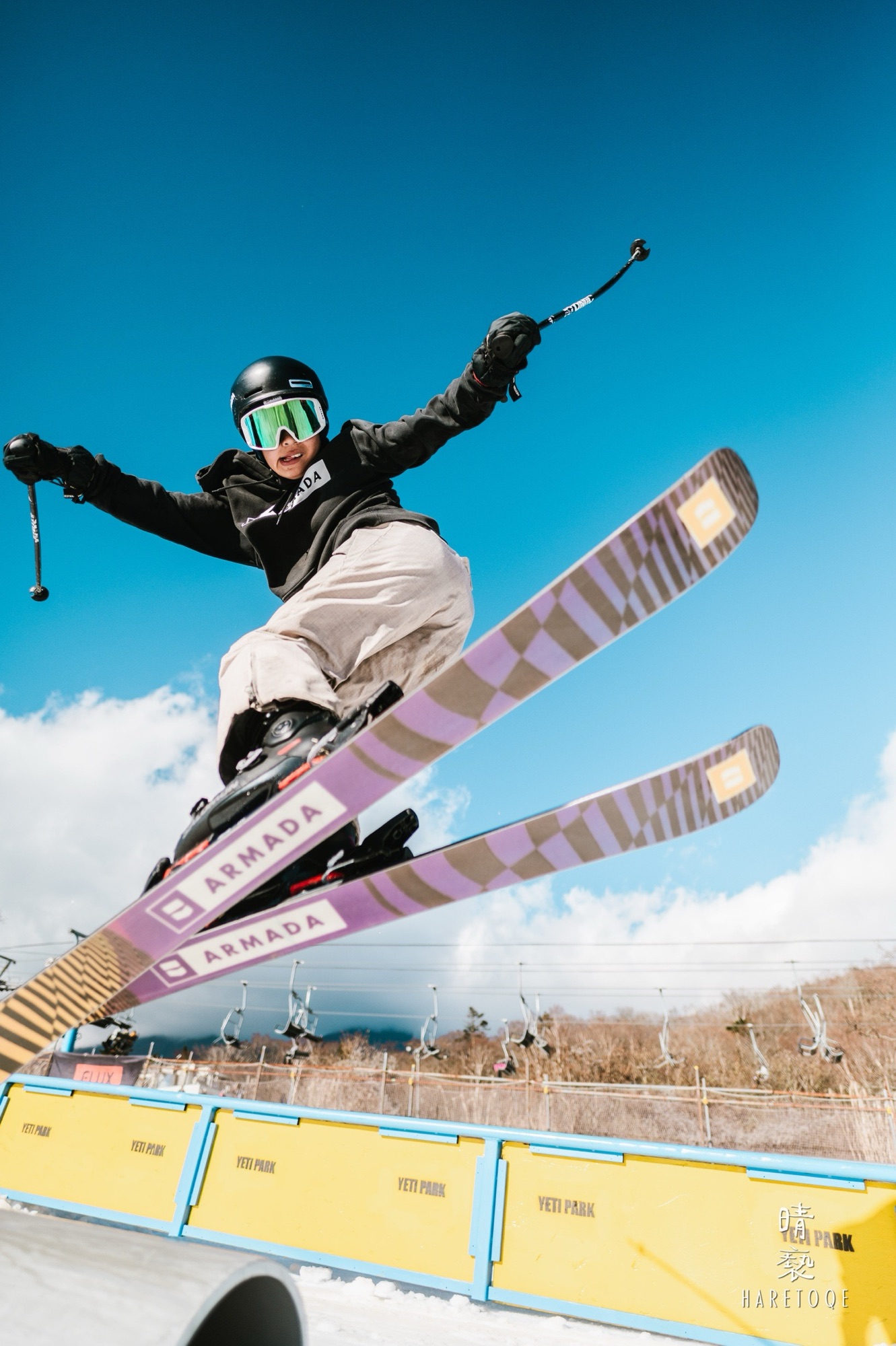 パークをメインに滑っている中で、特にジブを得意としており、このスキーがアルマダのツインチップの中で最も、俊敏に動くことができ、容易にトリックを決められるからです。